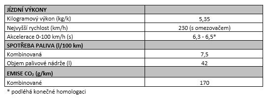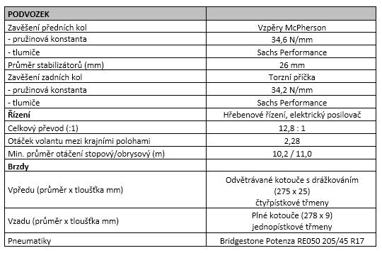Motor pracující s kompresním poměrem 10:1 dosahuje nejvyššího výkonu 212 k (156 kW) při 6 800 ot/min, resp. točivého momentu 250 Nm při 5 000 ot/min. Jednotka pohánějící přední kola prostřednictvím šestistupňové manuální převodovky uděluje vozu zrychlení na 100 km/h za cca 6,3 sekundy; nejvyšší rychlost je elektronicky omezena na 230 km/h.
