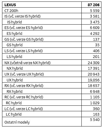 • Nejúspěšnější hybridní modely: NX hybrid (17 391); UX hybrid (19 056); RX hybrid (6 948);