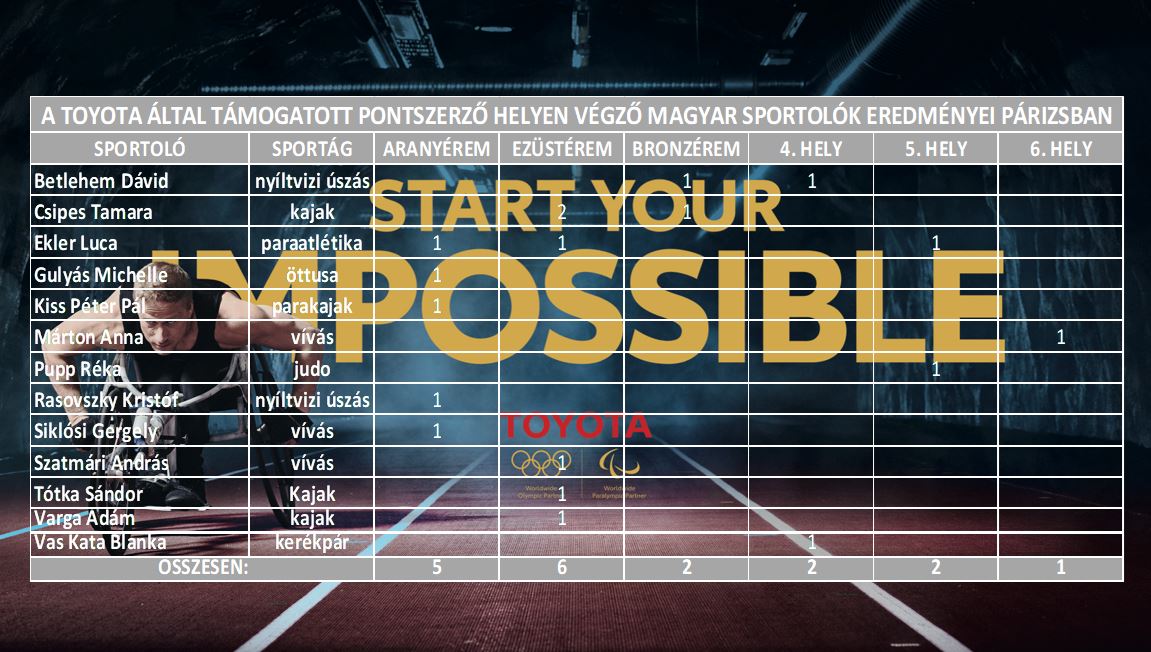 Tizenhárom érmet és további öt pontszerző helyet szereztek a Toyota által támogatott magyar olimpikonok és paralimpikonok Párizsban