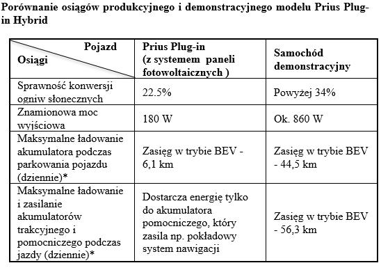 W ramach współpracy firma Sharp zmodernizowała swoje światowej klasy ogniwa słoneczne o wysokiej wydajności*1 (wydajność konwersji powyżej 34 proc.*2), opracowane wcześniej na potrzeby projektu prowadzonego przez NEDO*3, by stworzyć pokładowy panel baterii słonecznych. Toyota zainstalowała ten panel na dachu, masce, tylnej klapie i innych częściach Priusa Plug-in Hybrid i tak powstał samochód demonstracyjny, przeznaczony do prób na drogach publicznych. Dzięki zwiększeniu wydajności panelu baterii słonecznych oraz zwiększeniu jego obszaru osiągnięto generowaną moc znamionową około 860 W*4. Jest ona około 4,8 razy większa w porównaniu z mocą generowaną z paneli fotowoltaicznych seryjnego modelu Prius Plug-in Hybrid. Oprócz znacznego zwiększenia produkcji energii elektrycznej, samochód testowy wykorzystuje system, który ładuje akumulator zarówno podczas parkowania pojazdu, jak i podczas jazdy, co ma skutkować znaczną poprawą zasięgu z napędem elektrycznym i większą oszczędnością paliwa.