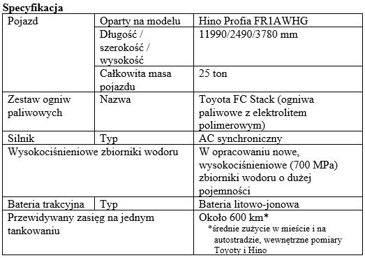 Toyota Motor Corporation i Hino Motors opracowują wielkogabarytową ciężarówkę zasilaną ogniwami paliwowymi. Obie firmy koncentrują się na praktyczności zastosowania wodorowych ciężarówek w codziennej pracy w biznesie. Nowy pojazd będzie miał zasięg około 600 km i dużą ładowność.