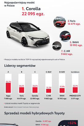 Toyota liderem polskiego rynku w 2021 roku. Corolla najpopularniejszym modelem. Nowy rekord sprzedaży hybryd Toyoty