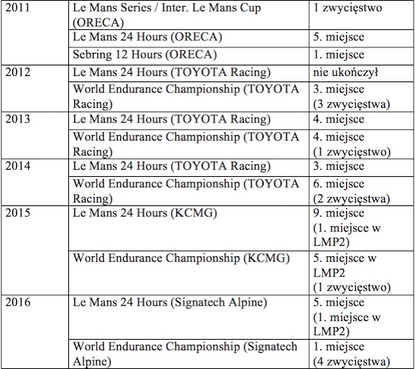 „To dla mnie spełnienie marzeń. Nie wyobrażałem sobie, że pewnego dnia będę mógł dołączyć do zespołu takiego jak TOYOTA GAZOO Racing w wyścigu Le Mans, dlatego jestem zdeterminowany, by jak najlepiej skorzystać z tej szansy. Podobały mi się pierwsze testy za kierownicą TS050 Hybrid, który jest naprawdę imponującym samochodem. Klasa LMP1 i wyścigi długodystansowe w Europie to dla mnie nowość, więc ciężko pracuję, żeby jak najwięcej się nauczyć od kolegów. Jestem pewien, że wiele zyskam dzięki Stéphane’owi i Nicolasowi, którzy są bardzo doświadczeni i bardzo szybcy” – podzielił się wrażeniami Yuji Kunimoto.