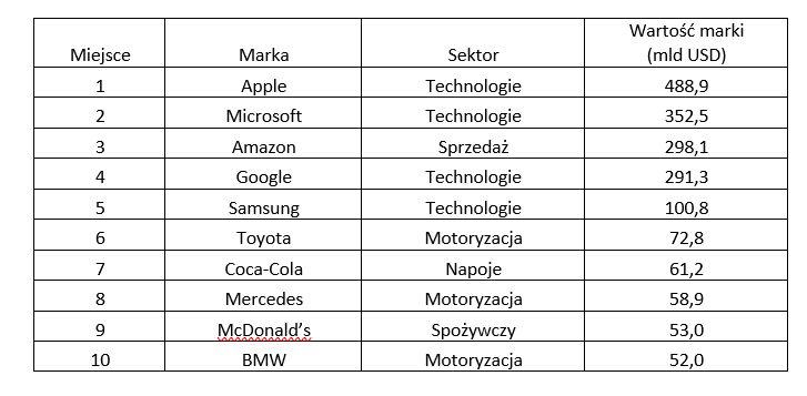Najbardziej wartościowe marki na świecie według raportu Best Global Brands 2024 firmy Interbrand