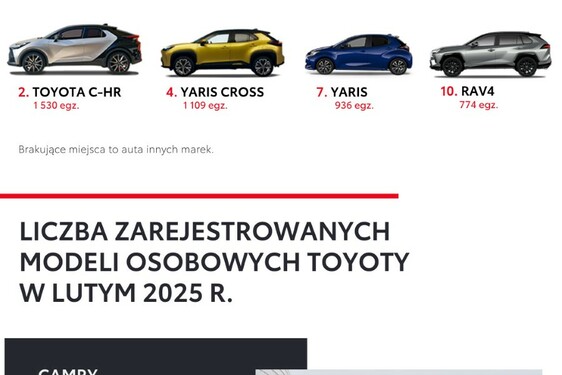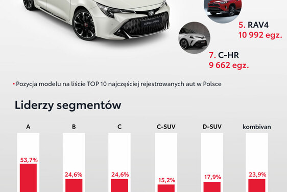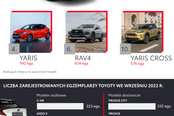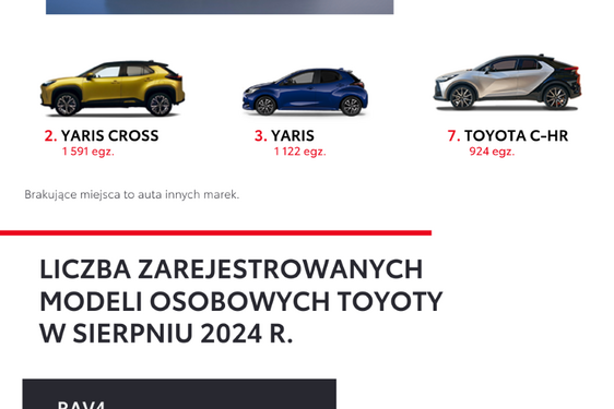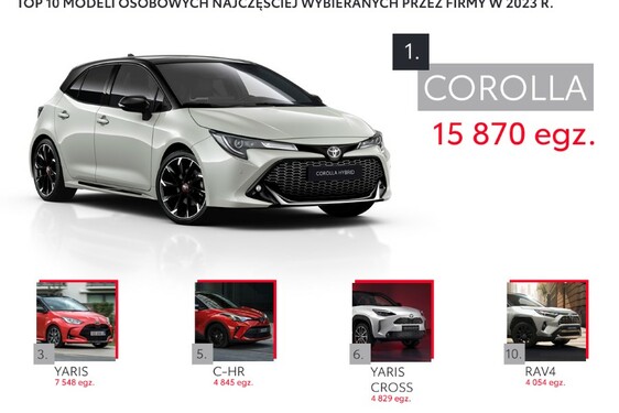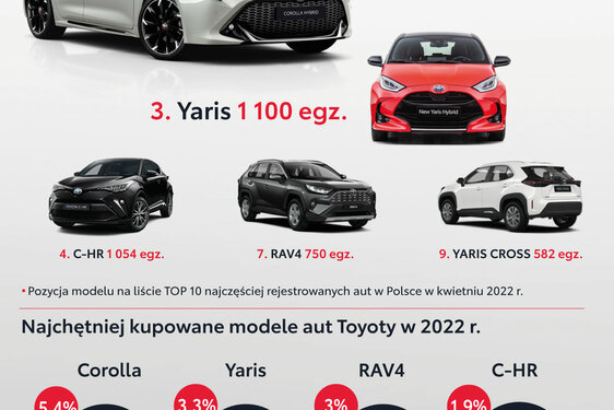 5 modeli Toyoty w top 10 polskiego rynku. Dane z kwietnia 2022 roku