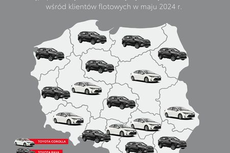 Dane z rynku flotowego za okres od stycznia do maja tego roku potwierdzają dominację Toyoty. Jej modele były najczęściej rejestrowanymi autami w 10 z 16 województw. Bestsellerem jest Corolla. Przedsiębiorstwa od początku roku zarejestrowały już 10 108 egzemplarzy tego modelu, który był najczęstszym wyborem firm w aż dziewięciu województwach. Tylko w warmińsko-mazurskim większą liczbę rejestracji zanotował Yaris Cross. Biorąc pod uwagę tylko auta Toyoty, w 15 województwach triumfowała Corolla, a w jednym Yaris Cross.