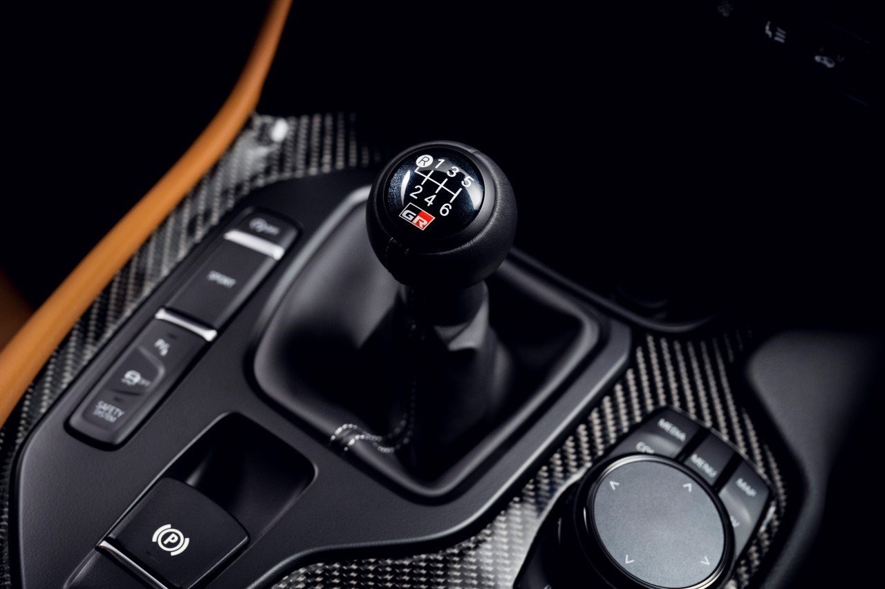 Wprowadzenie do GR Supry manualnej skrzyni biegów wymagało dostosowania konsoli centralnej, aby zapewnić kierowcy komfortowe, ergonomiczne manewrowanie dźwignią zmiany biegów. Nie wystarczyło tylko zmienić jedną dźwignię na inną. Inżynierowie Toyoty poświęcili szczególną uwagę temu, by optymalnie umieścić gałkę lewarka i zapewnić precyzyjną, szybką zmianę biegów.