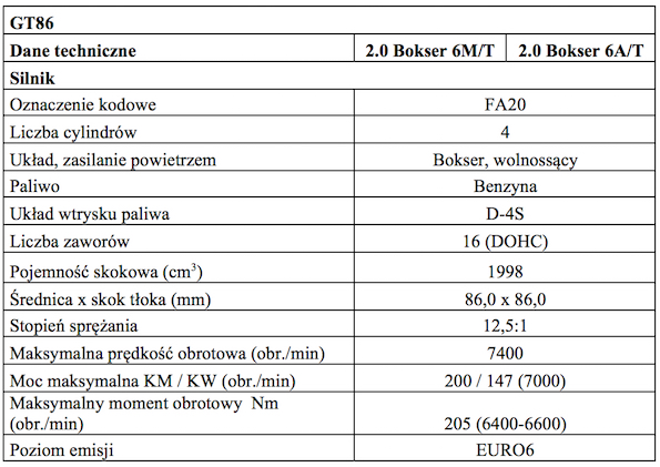 Auto napędza kompaktowy, umieszczony z przodu pojazdu silnik wolnossący 2.0 o mocy 200 KM typu bokser z przeciwsobnym układem cylindrów w płaszczyźnie poziomej. 6-biegowa przekładnia manualna lub automatyczna skrzynia biegów ECT przenosi napęd na tylną oś.